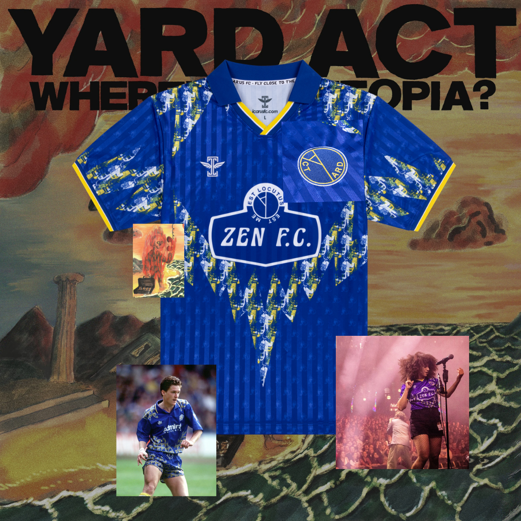 After watching English post-punk band Yard Act at the world's largest football shirt convention (Glastonbury), we made a beeline for their management, asking if they'd like to make a custom jersey.