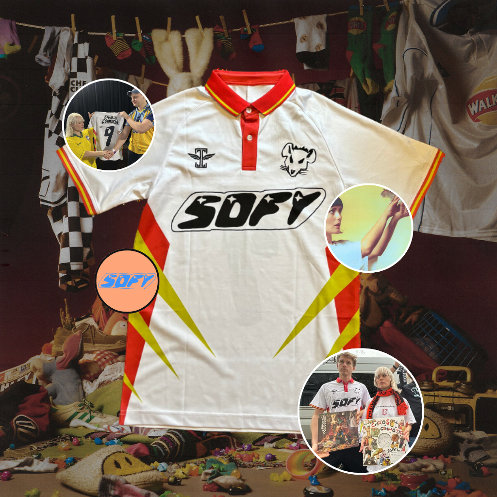 SOFY isn’t just one of British indie-pop’s brightest talents: she’s also a formidable collector of football shirts. So, when she asked us to make a merch jersey to celebrate her Chaos & Commotion tour, we were honored to join this fabled collection.
